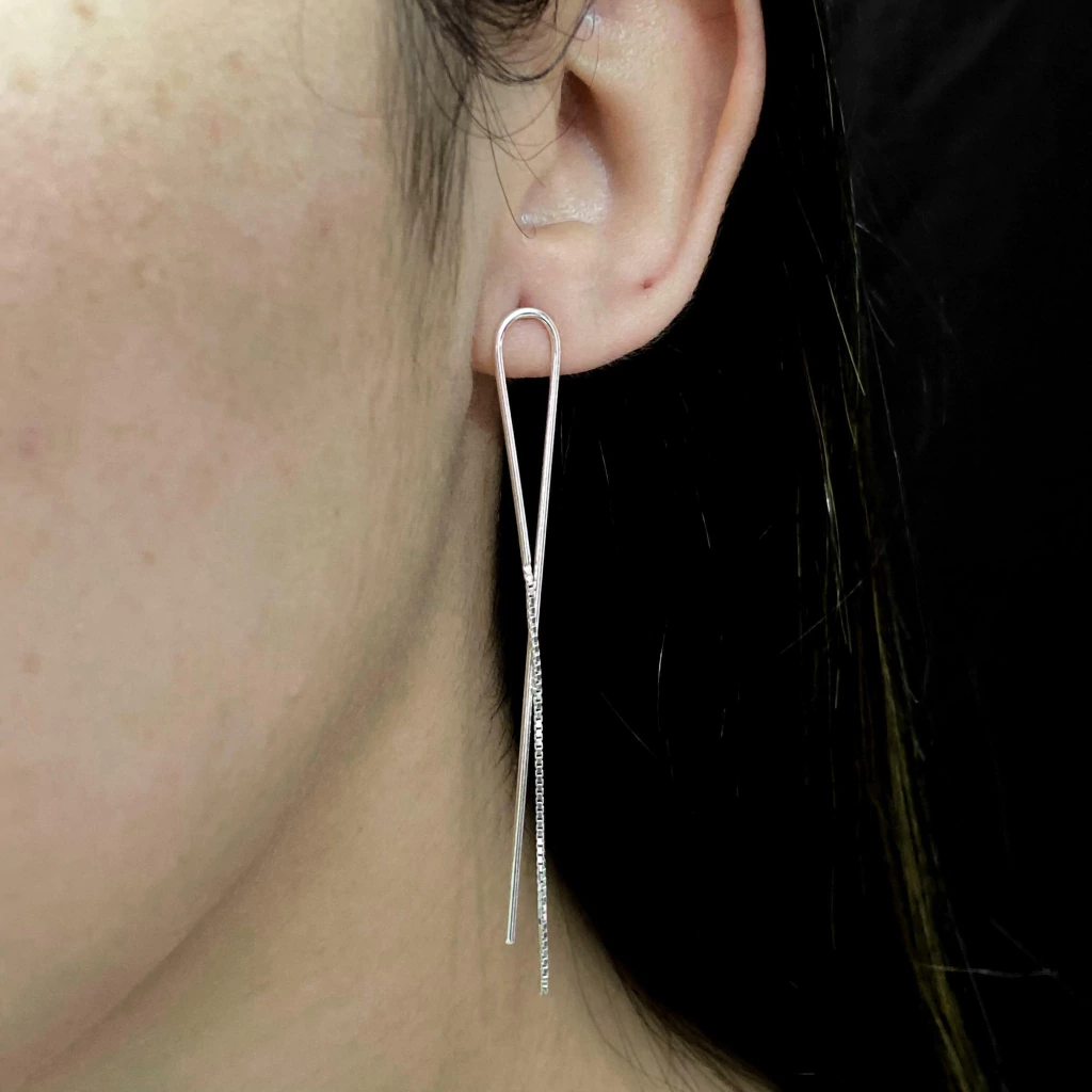 Brinco 2 fios estilo anzol metade de veneziana 6,5cm em Prata 925, Elegância e Sofisticação em Cada Detalhe