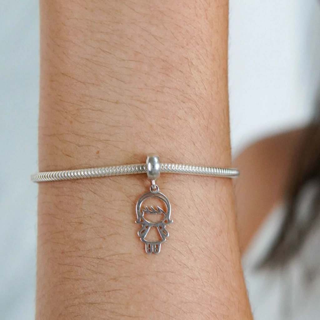 Os produtos possuem medidas precisas que facilitam a montagem de diversas peças: o berloque Menina Vazada mede 9,5 mm de largura por 17 mm de altura, o berloque Menino Laser Vazado 9,5 mm de largura por 12,5 mm de altura, e o berloque Família Amada 11 mm de largura por 12,5 mm de altura. Todos são fabricados em prata de lei 925, com acabamento a laser para detalhes refinados, resistentes e de alta precisão. As argolas soldadas oferecem maior segurança na fixação, complementando a durabilidade e beleza do conjunto.